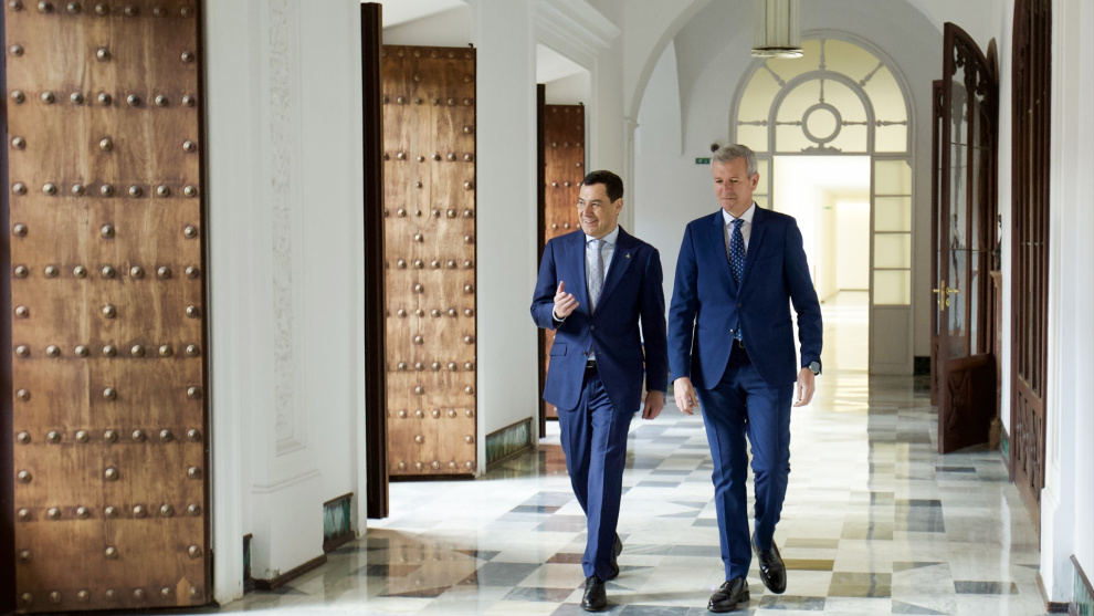 Los presidentes de Andalucía, Juan Manuel Moreno Bonilla (PP) y Galicia, Alfonso Rueda (PP), defendieron este martes en una rueda de prensa en Sevilla, en el marco del II Encuentro entre ambas comunidades, que el cambio climático es una realidad contrastada y que hay que trabajar para mitigar sus efectos, eso sí, de la mano de los sectores económicos afectados —agricultores y ganaderos, sobre todo— y a un ritmo y con una financiación adecuada para ellos y sus explotaciones.