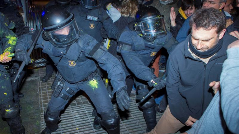 CatalunyaLos Mossos cargan durante las protestas contra el encarcelamiento de los soberanistas