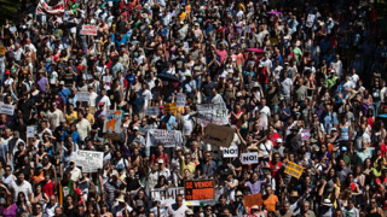 Desde primera hora de la mañana, los manifestantes volvieron a gritar "Que no nos representan", "Lo llaman democracia y no lo es" y "Esta crisis no la pagamos", entre otros lemas. Aunque la convocatoria -realizada por la Coordinadora de Barrios y Pueblos en Lucha y a la que se unieron también Juventud Sin Futuro, Democracia Real Ya y el Movimiento 15-M- invitaba a clamar contra el Pacto del Euro, las protestas apuntaban en todas direcciones.