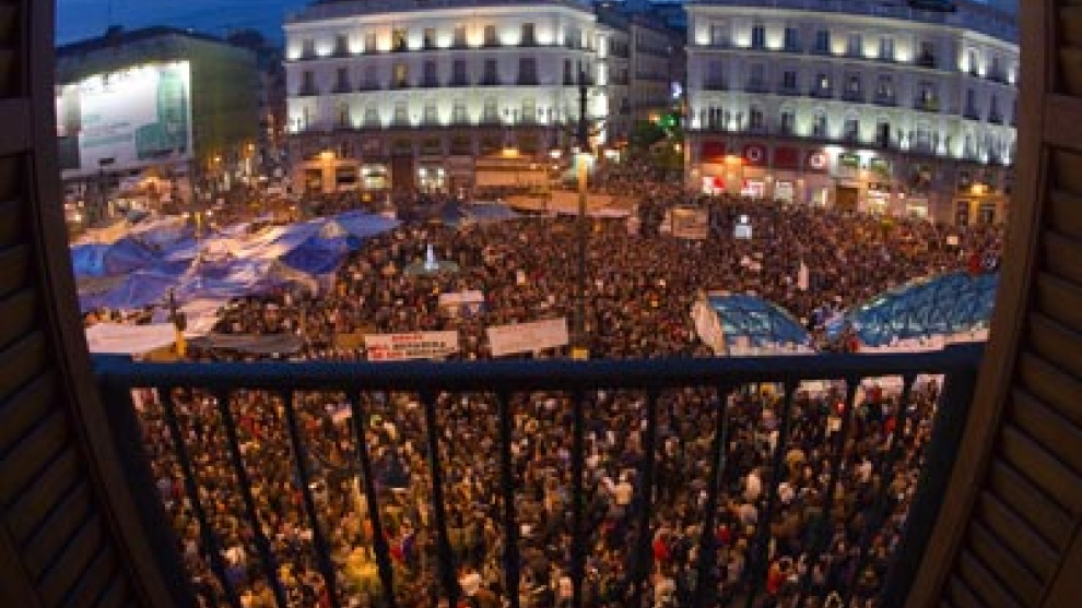 Fruto de la manifestación del 15-M, minutos después de que terminara la marcha y de manera espontánea, nació la acampada de Sol. "Alguien se sentó en el suelo y dijo: ¡Qué cansado estoy! Unos cuantos se lo tomaron como un símbolo, como si fuera un ¡Qué cansados estamos de los políticos, de que nos utilicen, de esta situación", cuenta Juan Cobo, portavoz de la protesta desde sus inicios.