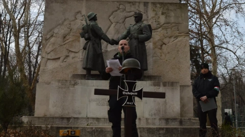 El neonazi Simon Lindberg durante un acto en Budapest en febrero de 2019. NORDFRONT