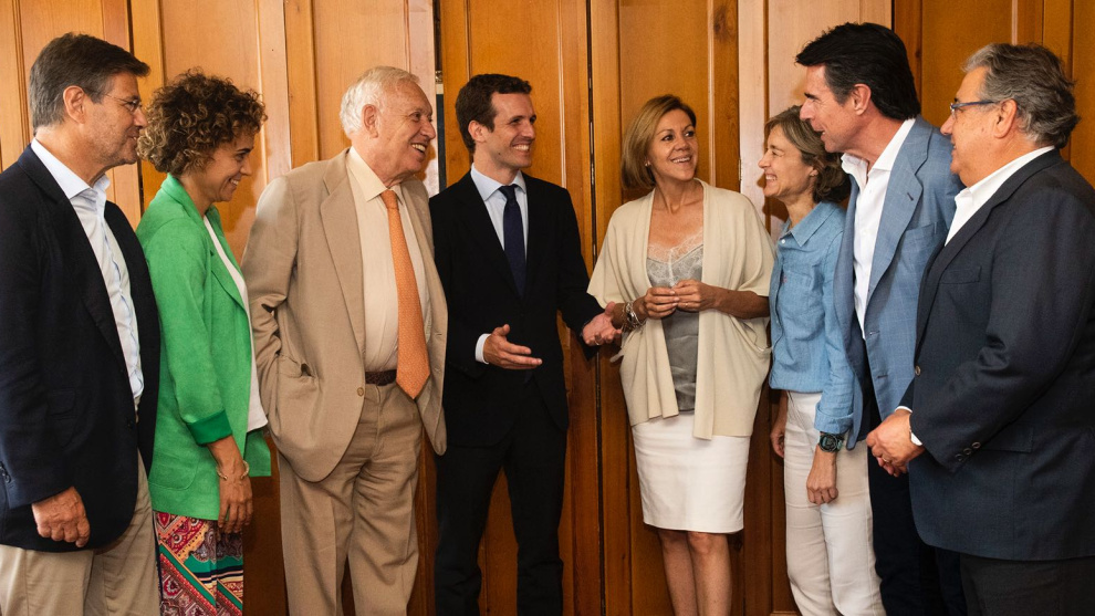 Ocho exministros del PP, la mayoría de ellos asistentes a una comida con Pablo Casado, han firmado un comunicado en apoyo a su candidatura, que consideran que supone un "proyecto ilusionante" y representa "la renovación y la experiencia necesarias".