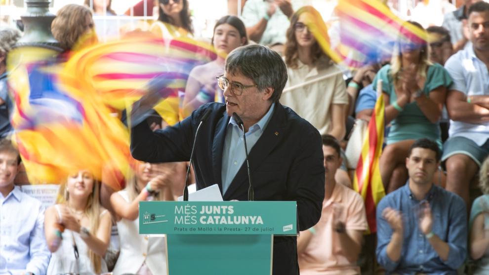 El expresidente de la Generalitat y líder de Junts, Carles Puigdemont, ha instado este domingo a no dar por descontado el voto de su partido, y a rehuir de los extremos y los populismos.