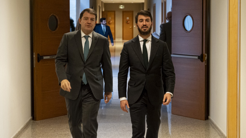 La falta de entendimiento entre los socios de Gobierno es palmaria pero, por ahora, no lo suficientemente grave como para precipitar una ruptura. El órdago que Vox lanzó este martes, a través de Ignacio Garriga, duró apenas tres horas. El secretario general de la extrema derecha dijo a primera hora de la mañana, en una entrevista en RTVE de Cataluña, que iban a "revisar" su continuidad en el Ejecutivo de Mañueco si el protocolo no salía adelante.