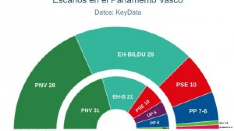 "El resultado de las elecciones autonómicas vascas está aún por decantarse. En estos momentos las dos formaciones abertzales están muy igualadas, liderando la intención de voto en las elecciones del próximo domingo. En el nuevo parlamento tres de cada cuatro diputados serán abertzales", señala el estudio de Key Data.
