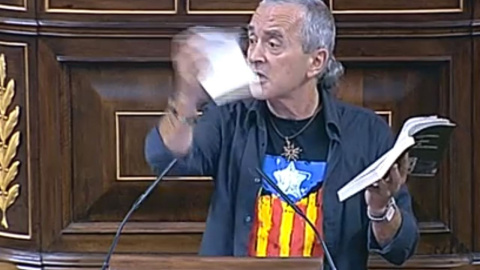 El diputado Cuadra estaba acabando su intervención, precisamente sobre el mismo asunto de hace dos semanas —la reforma urgente de la ley del Tribunal Constitucional propuesta por el grupo popular— cuando se ha referido al incidente que protagonizó para justificar que en su opinión tanto el PP como el PSOE “también han arrancado páginas de la Constitución”, aquellas que aluden al derecho al trabajo y a la vivienda, entre otras.