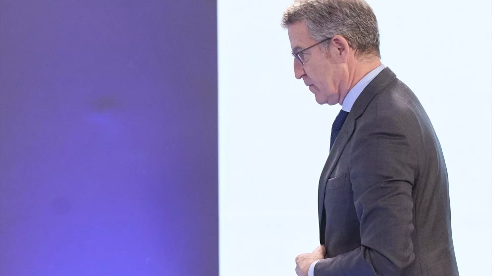 Este lunes, Alberto Núñez Feijóo presentó las líneas maestras de su programa electoral para las elecciones europeas y en el partido se quejan de que no ha tenido el eco que esperaban. La propuesta de las bonificaciones fiscales a los jóvenes en sus primeros cuatro años de trabajo, por ejemplo, pasó casi desapercibida entre los equilibrismos de Feijóo con los que terminó justificando los ataques de Javier Milei al presidente del Gobierno. A 20 días de las elecciones europeas, la crisis diplomática abierta entre España y Argentina a cuenta de los exabruptos del mandamás argentino marca el debate político y el PP, en una buscada equidistancia, se reconoce atrapado por "una pinza" de PSOE y Vox.