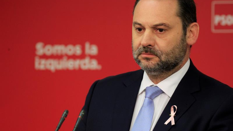 El secretario de Organización del PSOE, José Luis Ábalos, durante la rueda de prensa que ha ofrecido hoy en la sede de Ferraz. / EFE