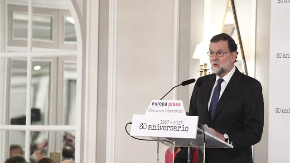 Así respondió Mariano Rajoy a la pregunta sobre la puerta abierta de ERC a abrir de nuevo una vía unilateral si gana las elecciones en Catalunya. Era una de las cuestiones planteadas en el desayuno informativo organizado por Europa Press con motivo del 60 aniversario de la agencia, una fecha que el jefe del Ejecutivo aprovechó para alabar la Transición y los retos superados en España desde entonces. En los últimos tiempos -presumió- el de haber evitado el rescate económico y restaurado la convivencia.