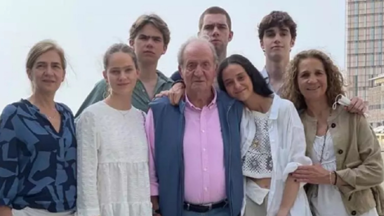 El rey emérito, Juan Carlos I, posa junto a las infantas Cristina y Elena y algunos de sus nietos, en Abu Dabi