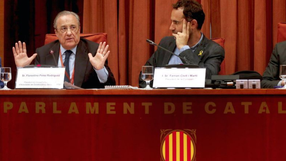 El presidente de ACS y del Real Madrid, Florentino Pérez, compareció este lunes como testigo en la comisión de investigación del Parlamento catalán sobre el almacén de gas Castor. Allí se vivieron varios momentos de tensión, especialmente uno protagonizado por el empresario y la diputada de la CUP María Sirvent.
