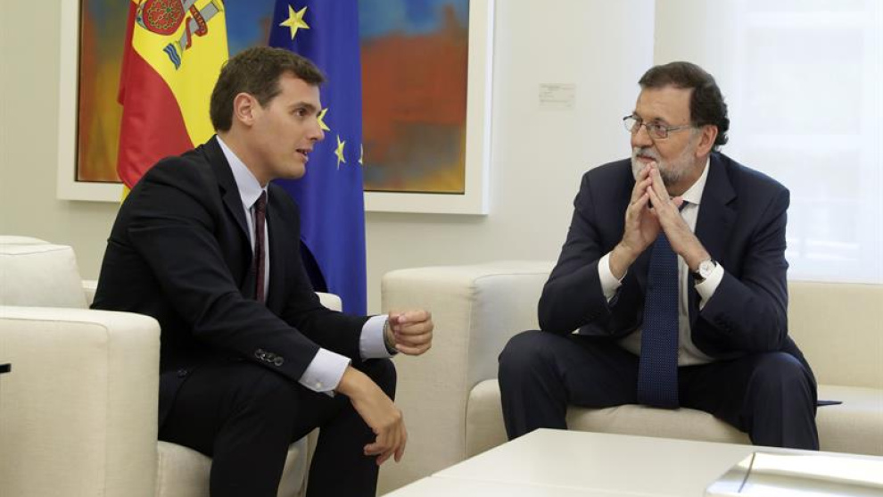 "Ha habido un cambio importante: la actuación de la Fiscalía". Albert Rivera se mostró así de "satisfecho" después de haberse reunido con Mariano Rajoy en la Moncloa durante algo más de una hora. El líder de Ciudadanos, que hasta ahora siempre había sido crítico con el presidente por haber permitido el "bochorno" de la consulta del 9-N de 2014, ve ahora diferencias con la convocatoria del 1-0.