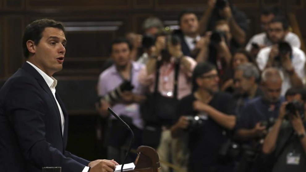 Igual que hizo el jefe del Ejecutivo ayer, el líder de Cs tildó la moción de "espectáculo" y dedicó sus 35 minutos de discurso a atacar a la formación morada por no tener, dijo, "un proyecto para España" y haber impedido un Gobierno alternativo tras las elecciones del 20-D: "Rajoy es presidente gracias a usted", le espetó.