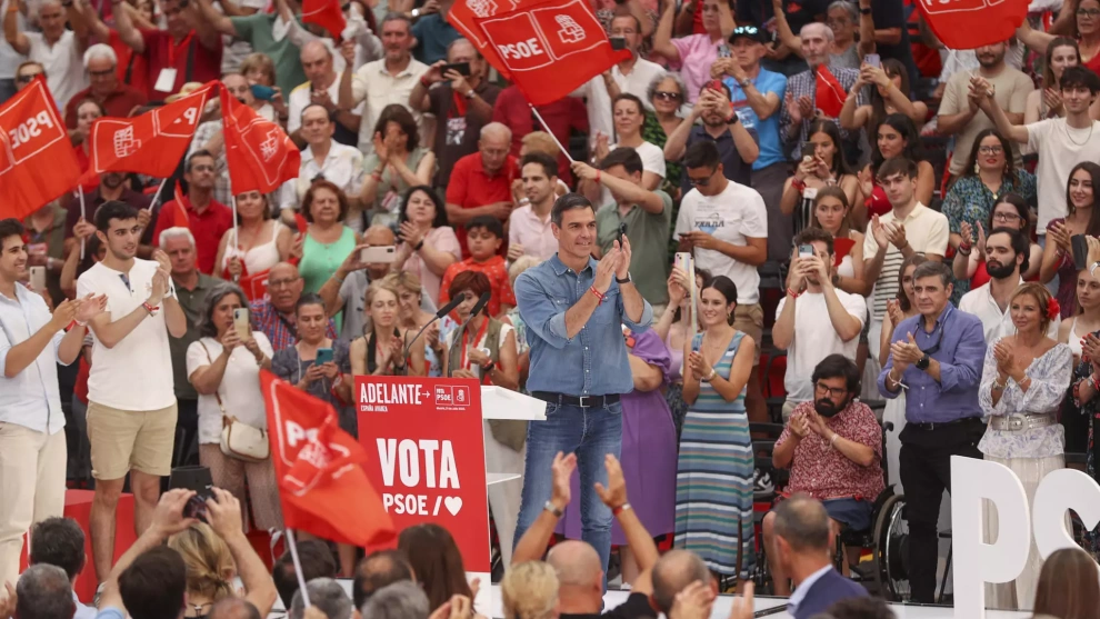 El presidente del Gobierno y secretario general del PSOE apela a los indecisos para revalidar el Ejecutivo de coalición progresista. En las filas socialistas reina la euforia porque ven posible la victoria tras un fin de campaña malo para Feijóo.