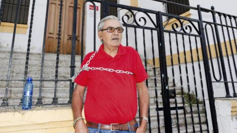 Un simpatizante del PSOE en Mérida se encadena en la sede local como protesta por el "golpe de Estado"