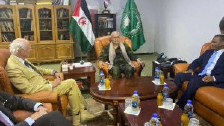 El enviado especial de la ONU para el Sáhara Occidental, Staffan de Mistura, se reúne con el líder del Frente Polisario, Brahim Ghali en Tinduf. Frente Polisario (CEDIDA)