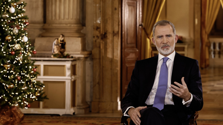 Felipe VI ha cambiado de escenario, de ejes temáticos e, incluso, de tono en su mensaje navideño de 2024; siempre, por descontado, sin abandonar su estudiada equidistancia. El rey empieza y termina su parlamento con múltiples referencias a las víctimas de la DANA y a la "solidaridad, y da un pequeño giro con respecto a anteriores mensajes navideños e incide en cuestiones sociales que preocupan a la ciudadanía (la vivienda, la cuestión migratoria o, sin mencionarla directamente, la antipolítica), aunque evita mostrarse claro en cuanto a las soluciones.