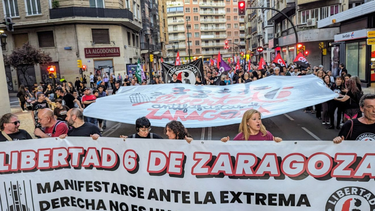 El próximo 16 de abril se cumplirá un año desde que ingresaron en prisión los dos primeros jóvenes zaragozanos condenados a cuatro años y nueve meses de cárcel por manifestarse en enero de 2019 ante los discursos de odio lanzados durante un mitin de Vox en Zaragoza.