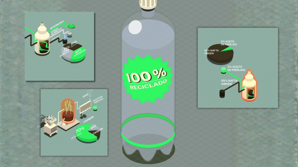 Este proceso permite, en teoría, fabricar, a partir de residuos plásticos que antes eran imposibles de reciclar, envases idénticos a los de plástico virgen, derivado del petróleo.