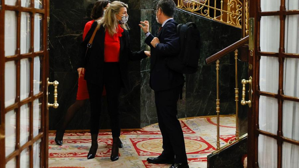 En el espacio confederal desconfían de las "buenas palabras" de los socialistas y del PP tras la reunión mantenida este lunes entre ambas formaciones. Yolanda Díaz reúne a los principales dirigentes de Podemos, IU y los comuns para coordinar una posición en la negociación para renovar el Poder Judicial.