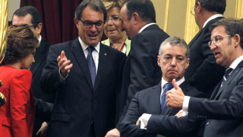 El presidente de la Generalitat catalana, Artur Mas, y el lehendakari, Ínigo Urkullu, no han participado en el aplauso a Felipe VI tras su discurso en el Congreso de los Diputados. Varios diputados y senadores de CiU Y PNV también se han negado este jueves a aplaudir al Jefe de Estado a su llegada al Salón de Plenos para asistir al acto de proclamación como nuevo Rey de España.