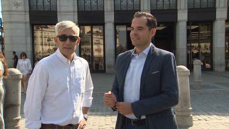 Aguado (Cs) atiende a los medios en la Puerta del Sol