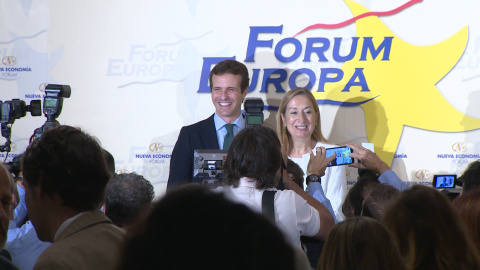 Imágenes de la presidenta del Congreso, Ana Pastor, en un desayuno informativo, presidentada por el presidente del PP, Pablo Casado.