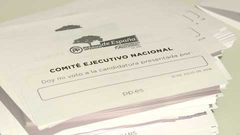 Imágenes del momento de las votaciones de los compromisarios durante el XIX Congreso extraordinario del Partido Popular