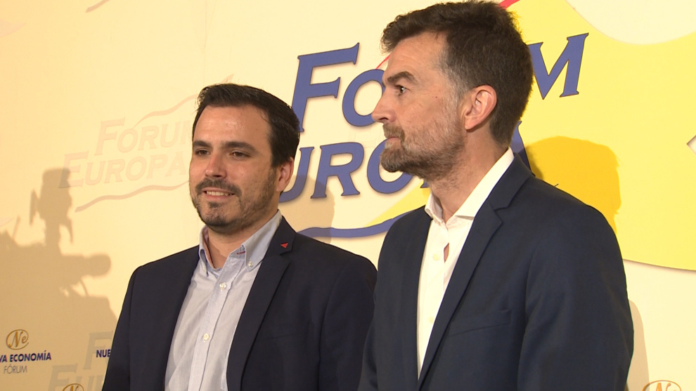 Imágenes del coordinador federal de Izquierda Unida, Alberto Garzón, quien ha intervebdido en el Desayuno Informativo del Fórum Europa, presentado por el coordinador general de IU Andalucía, Antonio Maíllo.