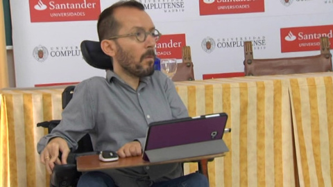 Imágenes del secretario de Organización de Podemos, Pablo Echenique, antes de participar en los Cursos de Verano que organiza la Universidad Complutense de Madrid en El Escorial.