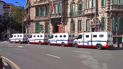 Imágenes de furgonetas de la Ertzaintza ante la Subdelegación del Gobierno en Bilbao tras una protesta por la sentencia del 'procés'.