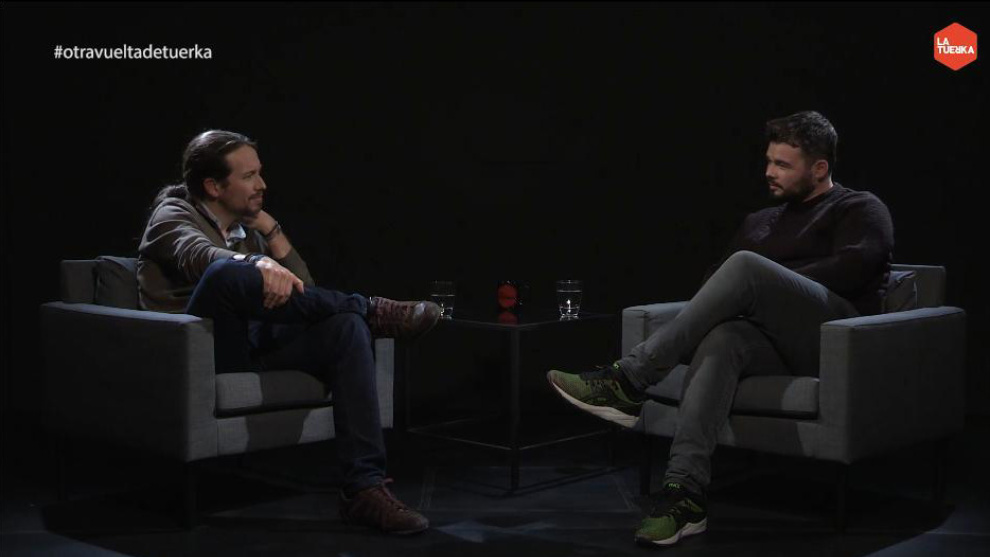 Política GobiernoPartidosCongresoTribunalesInteriorMemoria Pública Otra vuelta de Tuerka Gabriel Rufián Ver vídeoVer en DailymotionTamaño de letraColor de fondoComparteLa Barraca Producciones17/01/2017 09:55Pablo Iglesias entrevista a Gabriel RufiánComparteEtiquetasPablo IglesiasGabriel Rufián