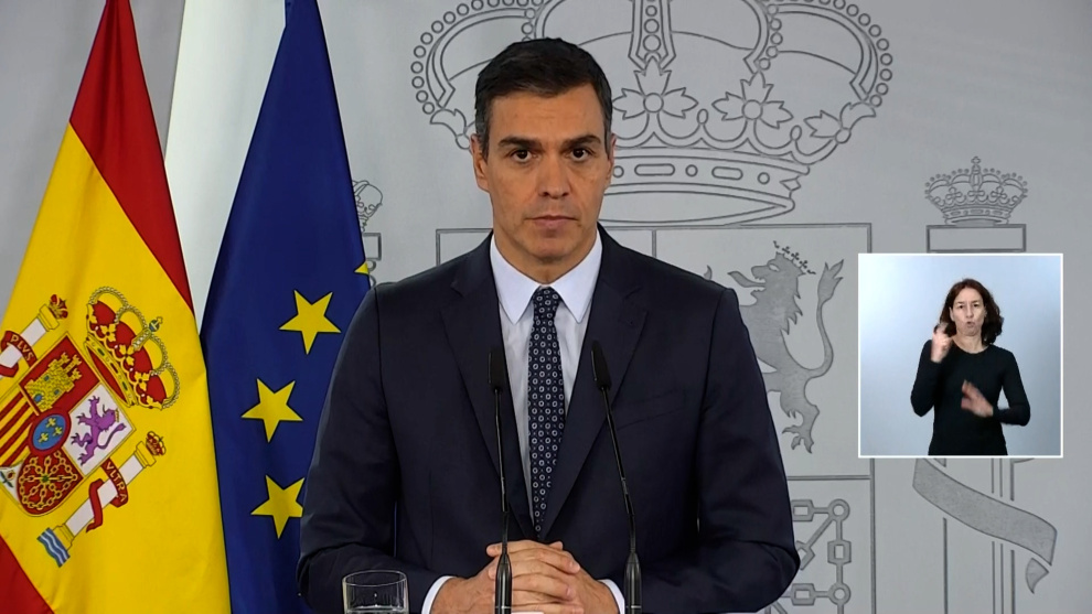 El presidente del Gobierno, Pedro Sánchez, ha anunciado en la rueda posterior al Consejo de Ministros extraordinario celebrado en el día de hoy la aprobación del estado de alarma para toda España que entrará en vigor esta tarde. Su objetivo es que esta situación sea prolongada por las Cortes Generales durante seis meses, hasta el 9 de mayo.