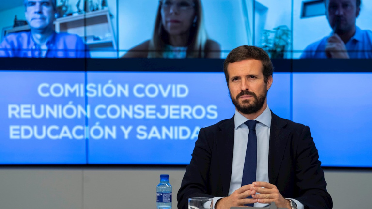 Pablo Casado dibuja un país sin libertad: “El radicalismo populista que ahora campa por Europa y muy especialmente aquí, en España. Han ascendido al Gobierno partidos antisistema que reniegan de nuestro Estado de Derecho y de nuestro pluralismo”.