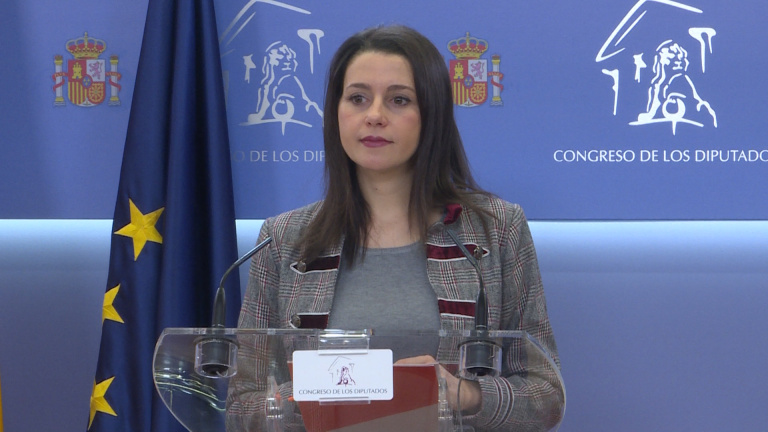 Imágenes de la presidenta y portavoz de Ciudadanos en el Congreso, Inés Arrimadas, en rueda de prensa desde la Cámara Baja.