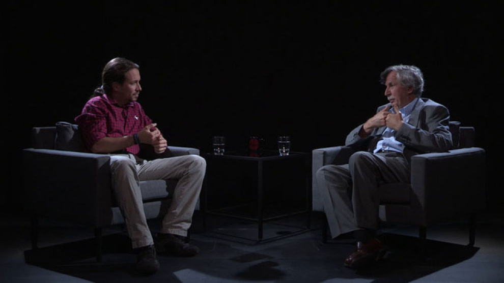 Pablo Iglesias entrevista a Joan Garcés, asesor de Salvador Allende y autor de 'Soberanos e Intervenidos', en el programa 'Otra Vuelta de Tuerka'