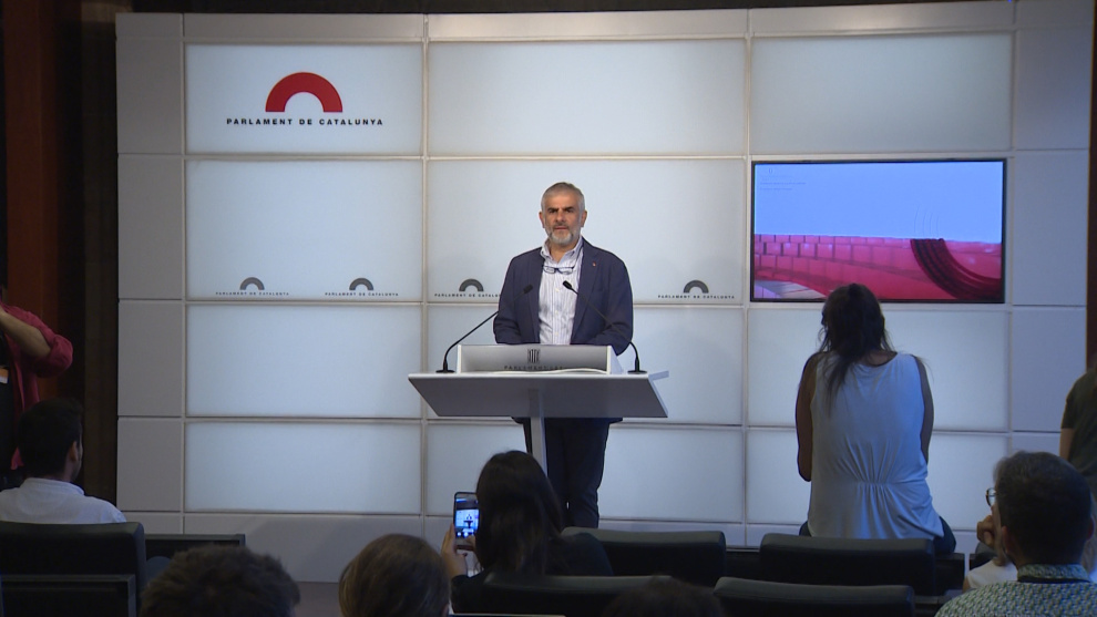 Imágenes de la rueda de prensa del líder de Cs en el Parlament, Carlos Carrizosa.