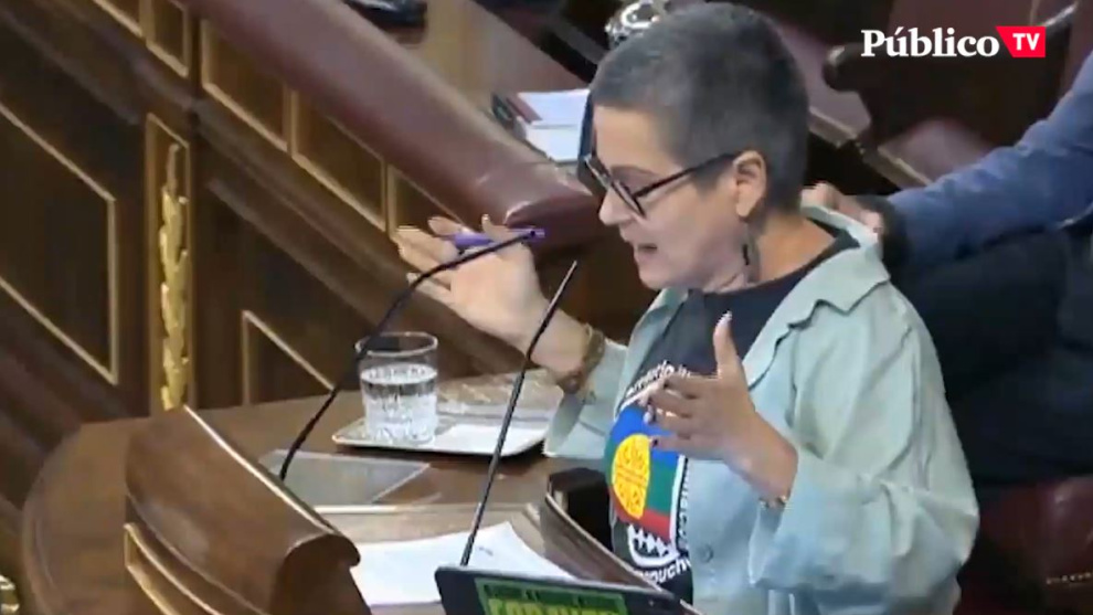 Macarena Olona, diputada de Vox, manda callar a la bancada de la izquierda tras una discusión de Espinosa de los Monteros con la diputada de ERC, Maria Dantas, por un cartel que decía "FORAVOX".