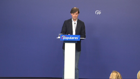Imágenes del vicesecretario de Comunicación del PP, Pablo Montesinos, en rueda de prensa.