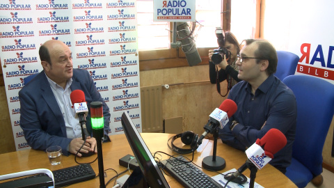Imágenes del presidente del PNV, Andoni Ortuzar, en una entrevista radiofónica en Bilbao.