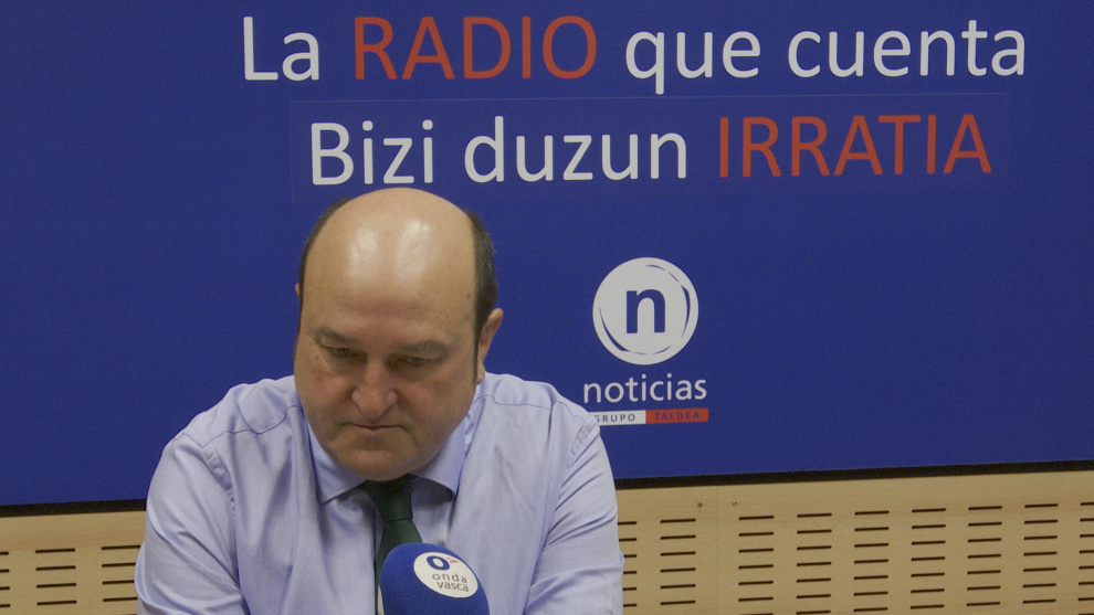 Imágenes del presidente del PNV, Andoni Ortuzar, en una entrevista radiofónica en Bilbao.