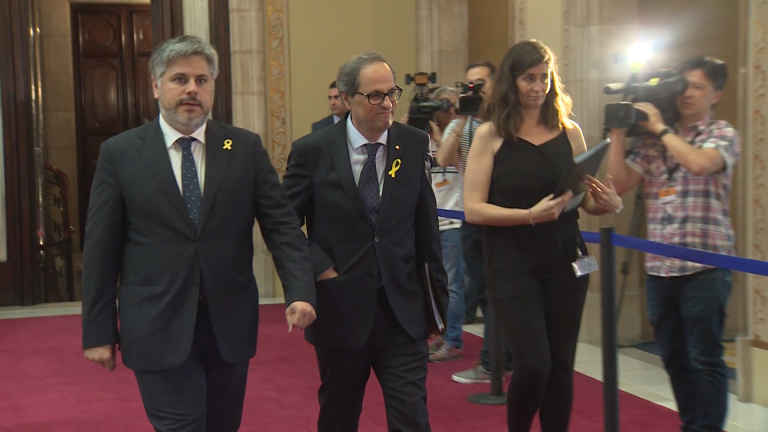 Primera sesión de control al Govern de Cataluña después de 9 meses. Una sesión en la que el presidente de la Generalitat, Quim Torra, ha tenido que contestar por primera vez a las preguntas formuladas por los partidos de la oposición.