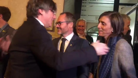 Imágenes del expresidente de la Generalitat Carles Puigdemont llegando a la Casa de la Generalitat en Perpignan (Francia), donde saluda a su director, Josep Puigbert, al presidente catalán Quim Torra, al exconseller Toni Comín y al conseller Jordi Puigneró, junto a las esposas de Puigdemont, Marcela Topor, y de Torra, Carola Miró