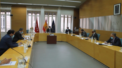 Imágenes de la reunión que ha mantenido la Comunidad de Madrid con representantes del Ayuntamiento de la capital y de la Delegación del Gobierno en la región para buscar soluciones a los problemas surgidos en la Cañada Real Galiana tras los cortes de suministro eléctrico que está sufriendo este enclave madrileño desde hace varios días.