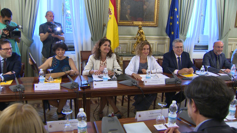 Las ministras de Política Territorial y Función Pública, Meritxell Batet, y de Hacienda, María Jesús Montero, presiden el pleno de la Comisión Nacional de Administración Local, reunión a la que ha acudido el presidente de la FEMP, Albel Caballero.