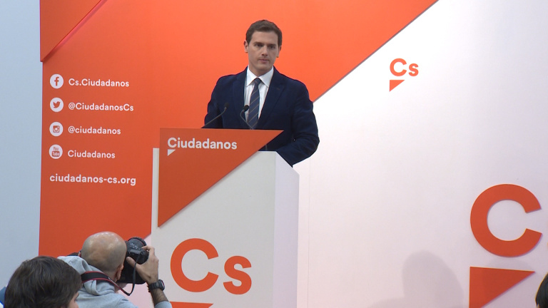Imágenes del presidente de Ciudadanos, Albert Rivera, en rueda de prensa.