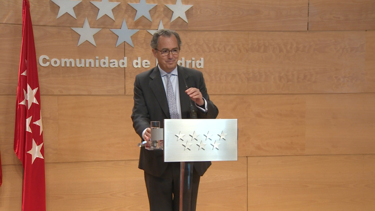 Imágenes del consejero de Educación de la Comunidad de Madrid, Enrique Ossorio, en rueda de prensa.