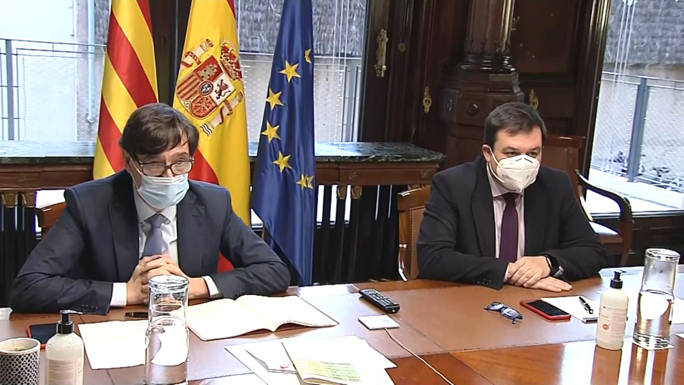 Imágenes del ministro de Sanidad, Salvador Illa, en rueda de prensa. (Fuente: La Moncloa)