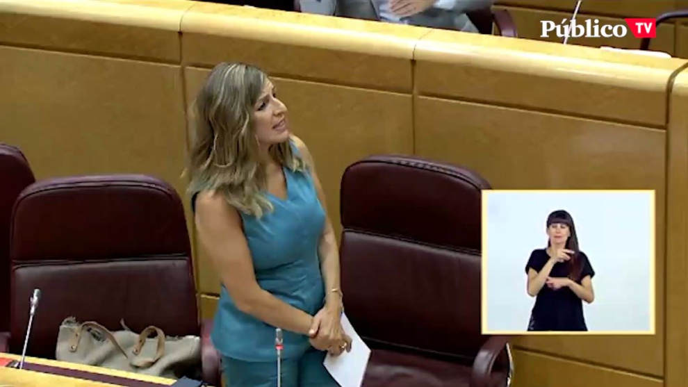 Yolanda Díaz aclara las cifras de los ERTE durante la sesión de control al Gobierno en el Senado y lanza un recado al PP: "Los ERTE que no se han pagado son los del Partido Popular".