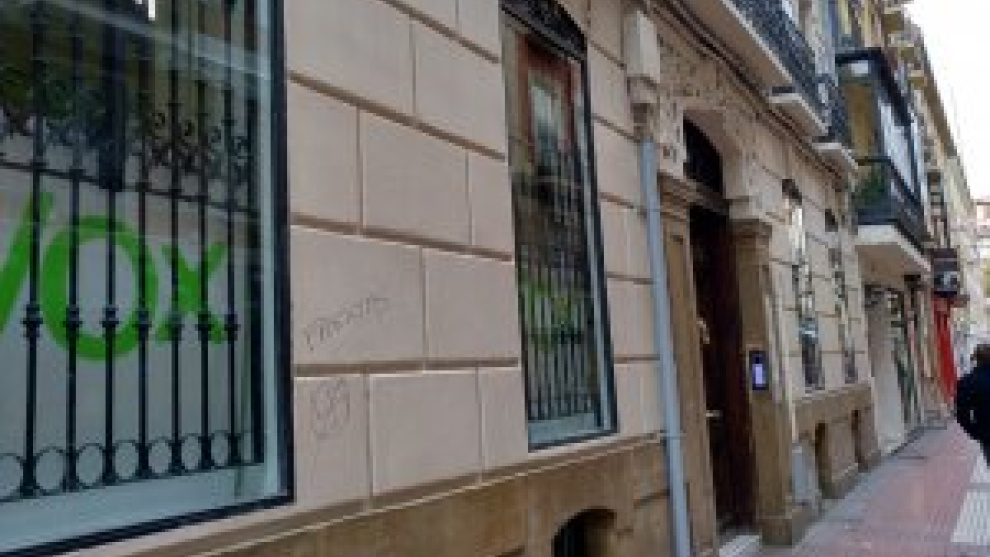 El Ayuntamiento de Zaragoza aplica plazos amplios en la inspección y evita abrir un expediente sancionador al partido ultraderechista por tapar con sus logos los forjados vanguardistas del inmueble de su sede.